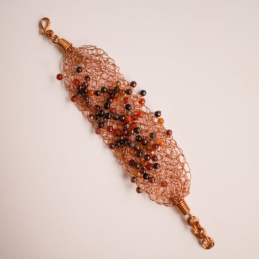 Made of enameled copper wire with rose gold color and agate stones