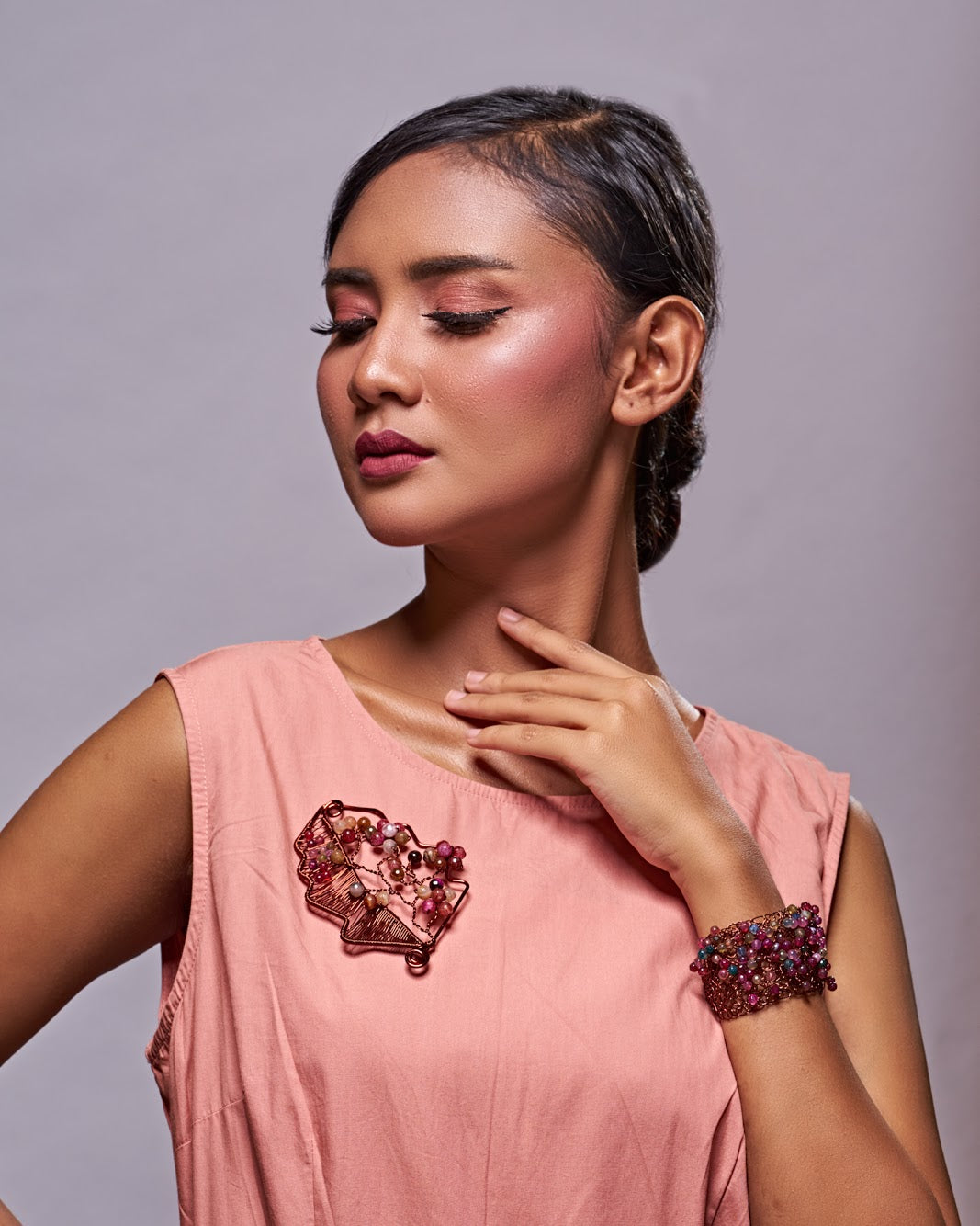 Made of enameled copper wire with brown color and agate stones