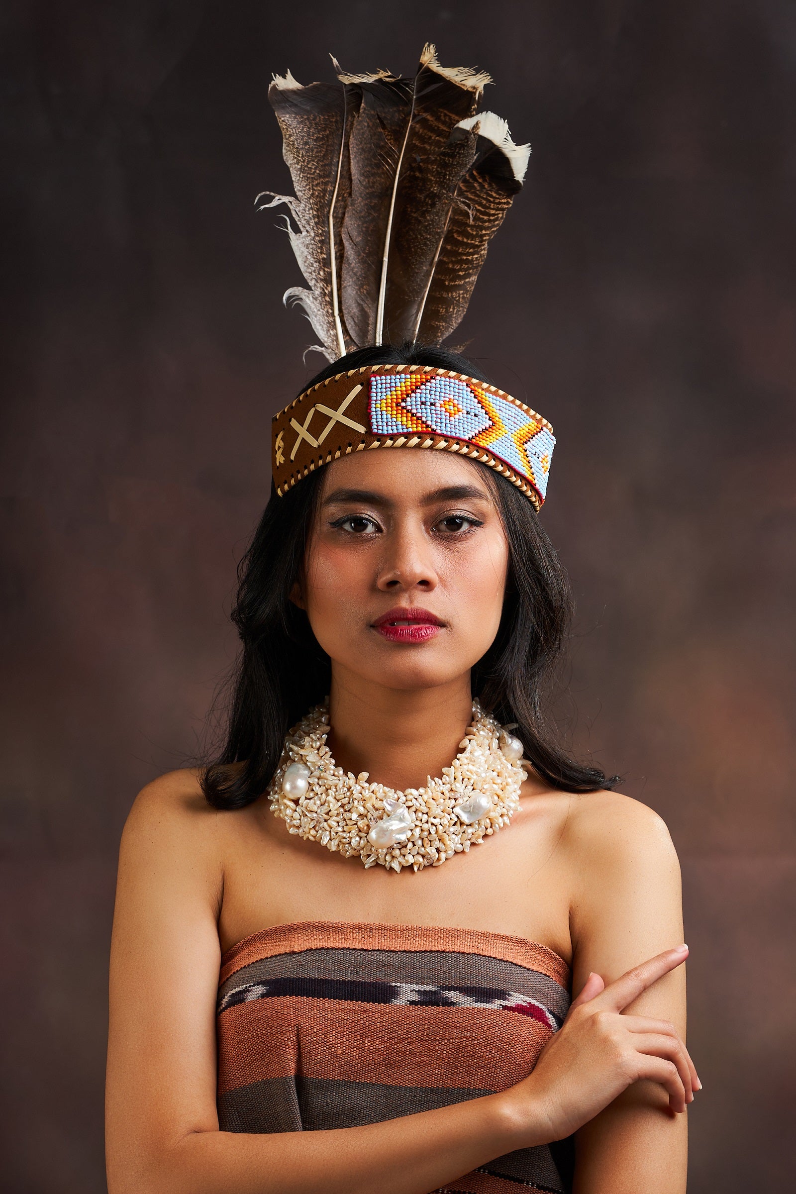 Interested by artistic “rawness” of the Dayak accessories, we reform it into a more modern and wearable pieces using stones and pearls without leaving the artistic value of Dayak culture