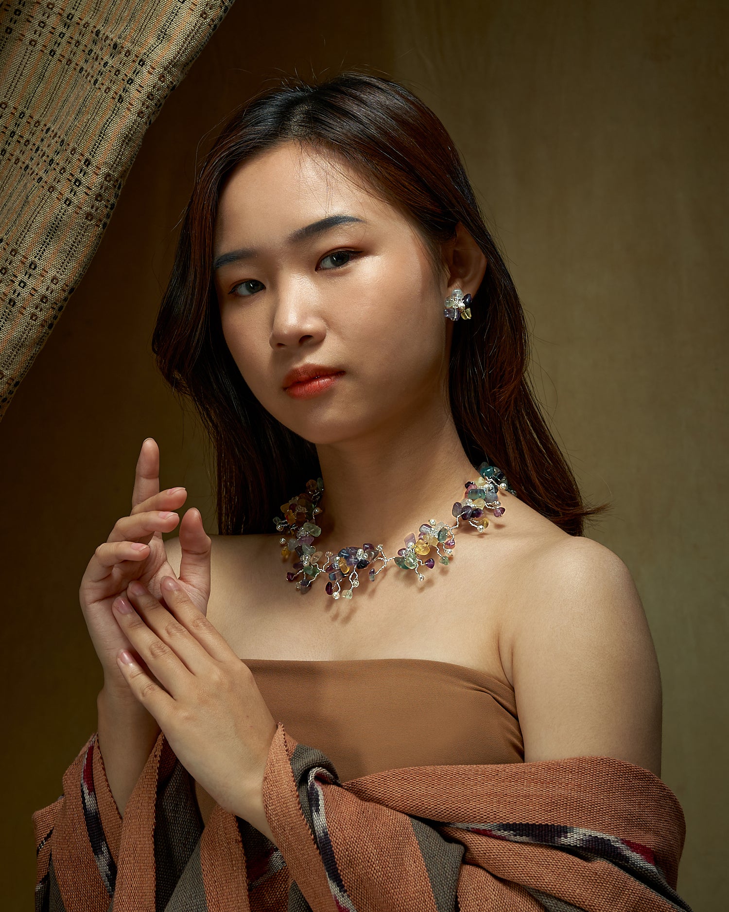 Reminiscing our all-time favorite flower necklace, this piece is an absolute showstopper and is guaranteed to make you stand out in any crowd. Material : Enameled copper wire with silver plating Agate Stones Crystal beads Shell pearl